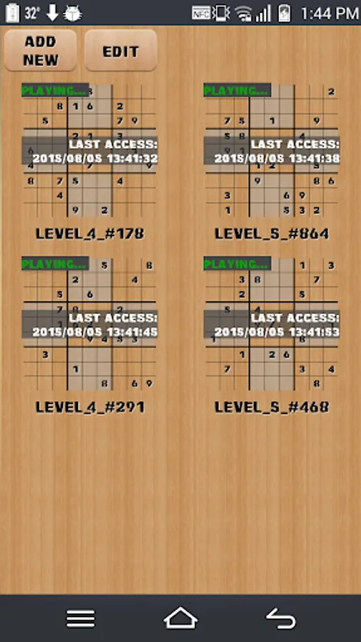 With My Sudoku, you can play thousands of free sudoku puzzles with various levels. Besides that, you can make your own sudoku puzzle or you can add from another source like news paper, sudoku web,... We support you automatic sudoku solver to solve the sudoku you add from other sources.