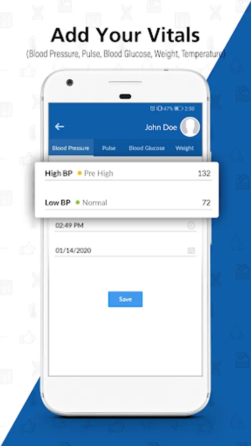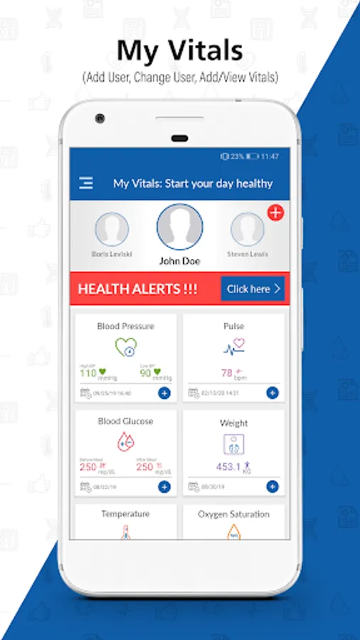 My Vitals™ is one of the best health and fitness apps available. Easy to use health diary has features to save your readings for Blood Pressure, Blood Glucose, Oxygen Saturation, Pulse, Weight, Medical Reports and other important information related to health of you and your family.