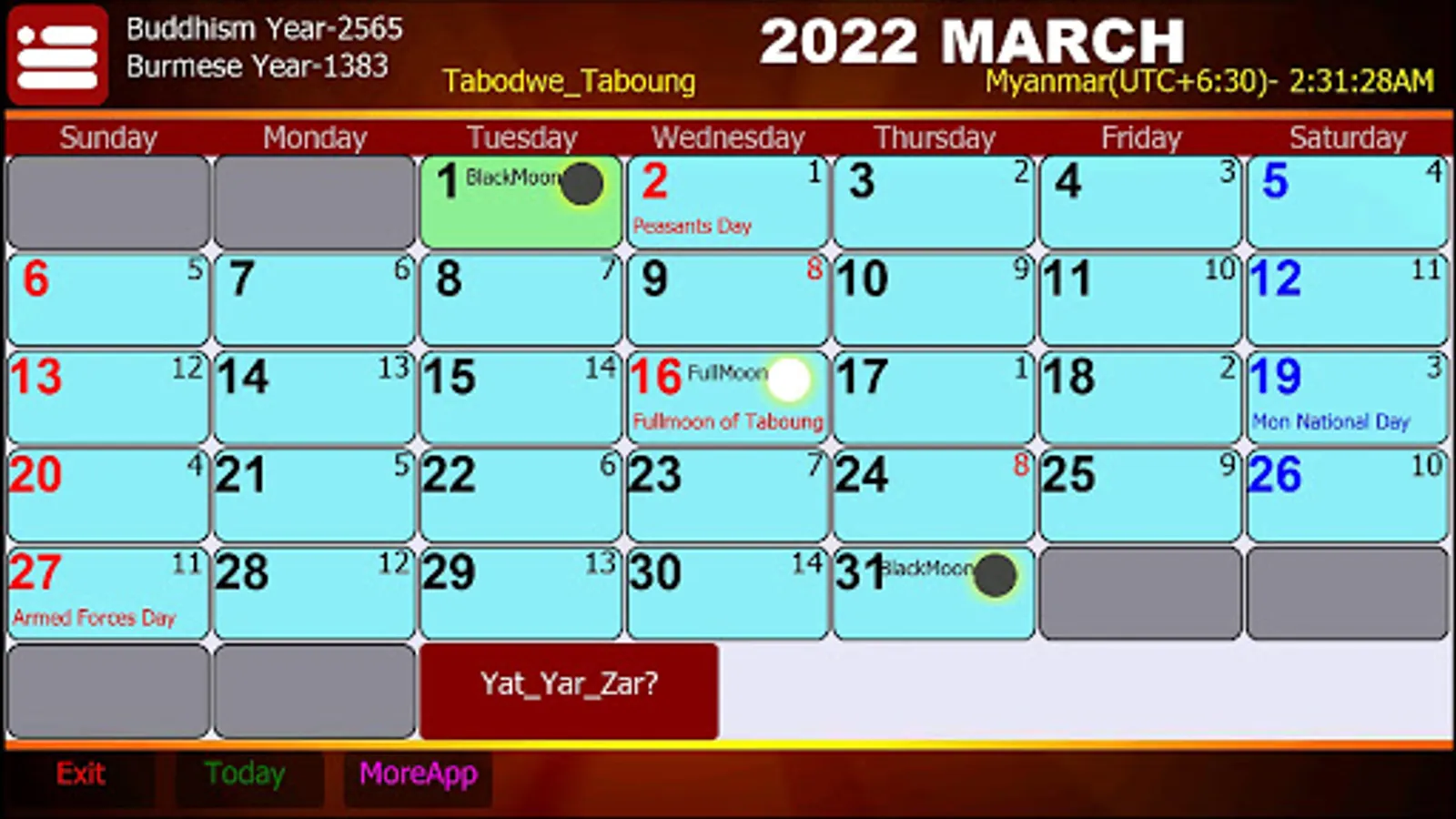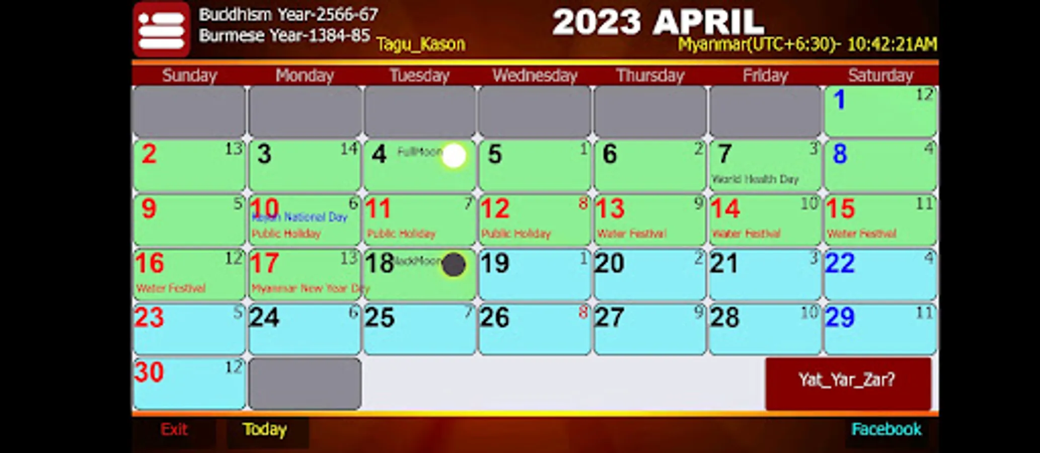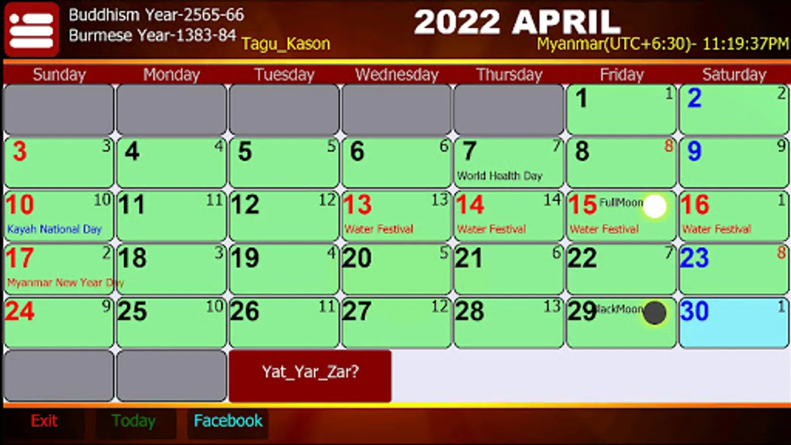 Myanmar people can be check Myanmar Public Holiday and full moon day.