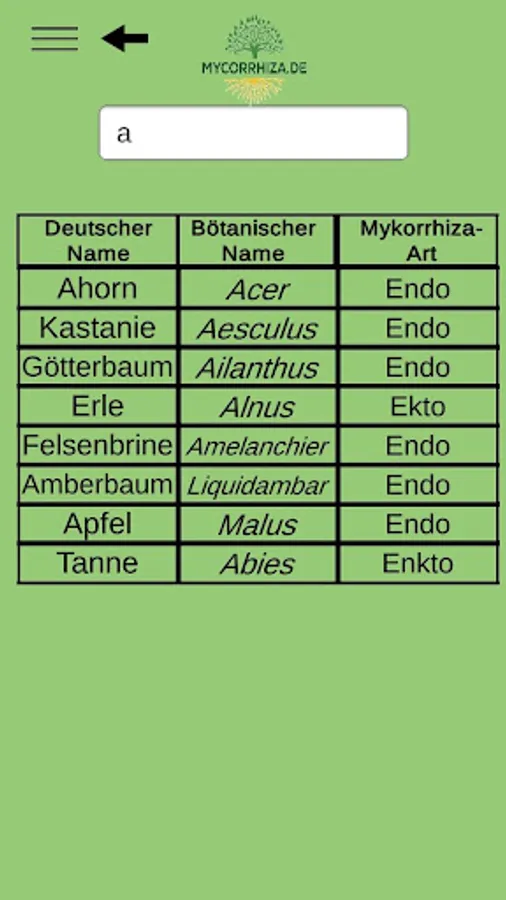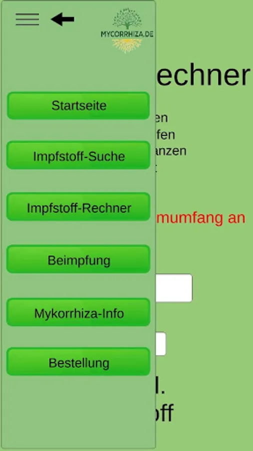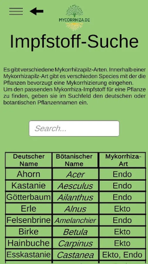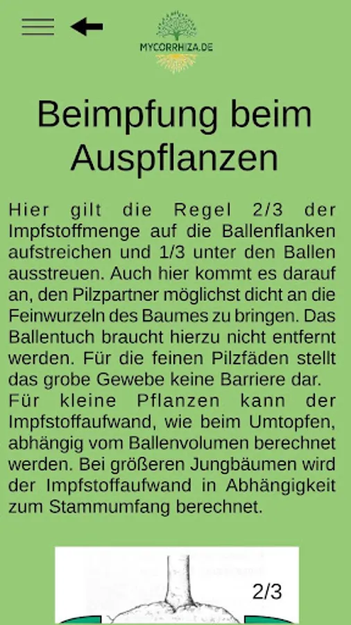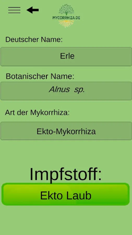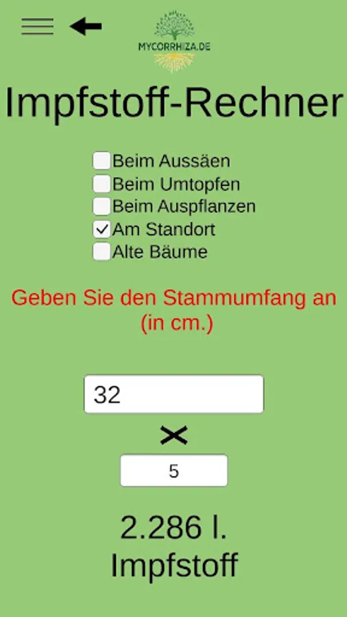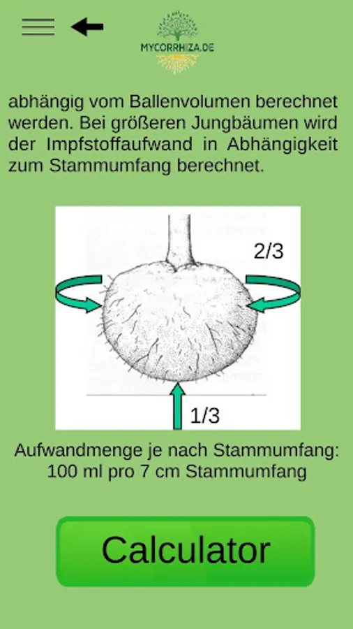 The mycorrhiza app finds the right mycorrhiza vaccine for shrubs and trees and calculates the amount of vaccine depending on the type of vaccination.