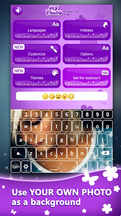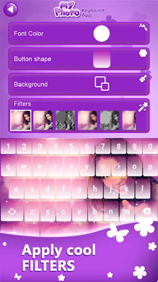 Do you know that saying - if you want something done right, do it yourself? If you want to have beautiful designs on your phone, My Photo Keyboard App offers you a chance to make them yourselves! Pick your favorite pictures and enjoy looking at your selfies or photos with your best friends as you type. You can create outstanding keyboard background picture with cool symbols, fancy fonts for texting and amazing smiley faces. Forget about boring “keypad pictures app” designs and color wallpaper themes. Your messaging experience will be much better once you download this excellent app. Your new photo keyboard background will turn text messaging experience into a real magical adventure! With our marvelous phone apps you can create a “my photo keypad” just the way you like it! Try out this fantastic app now and use funny keyboard pictures for making magnificent designs!