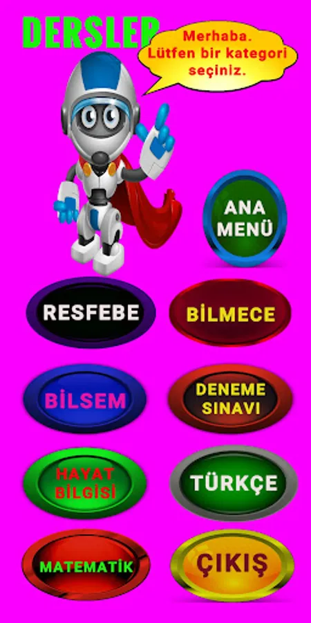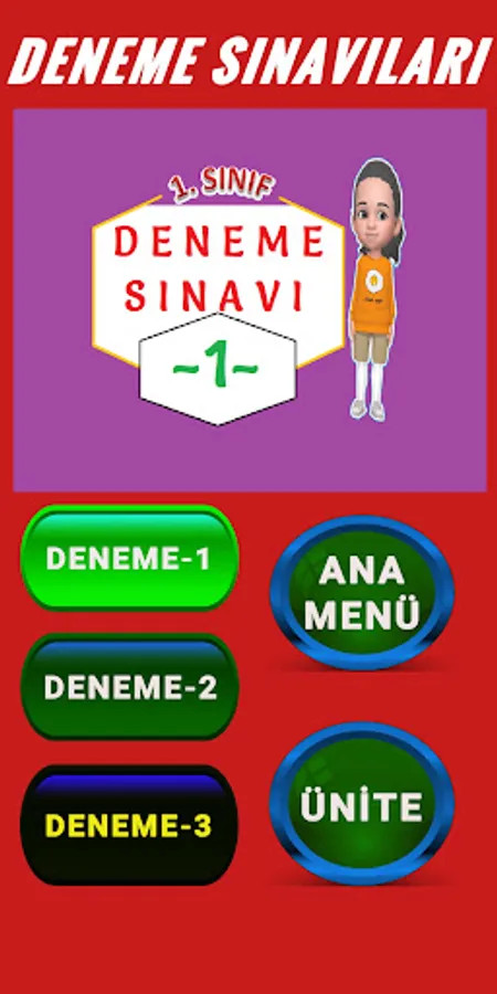 Uygulama 1. sınıf öğrencilerinin görmüş olduğu Türkçe, matematik, hayat bilgisi ders konularının testlerini ve o yaş çocuklarının daha kolay öğrenmesini düşündüğüm bilmece, resfebe oyunu ve bilsem sorularını kapsıyor. Oyunda her ders ve konu ile ilgili 3 test vardır.1. testen başarılı olursan 2. test ve daha başarılı olursan 3. test açılıyor. Testleri daha kolay geçmek için 3 adet joker bulunmaktadır. Jokerleri her testte bir defa kullanabiliyorsun. Herkese başarılar dilerim .