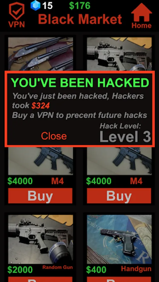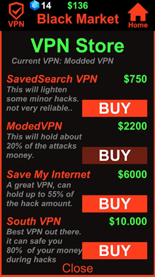 Rags to Riches is a fun Market Place simulator game where you can buy alot of cool items, sell them and make alot of profit. Use the ingame money to buy VPN's, to protect against hackers when you are surfing on the black market!