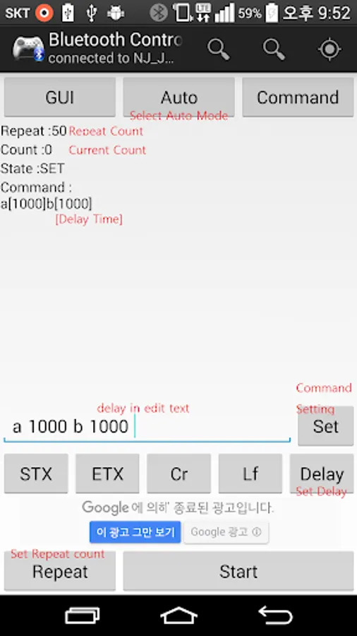 Auto Mode : 지정한 횟수만큼 반복적으로 명령어를 전송합니다.