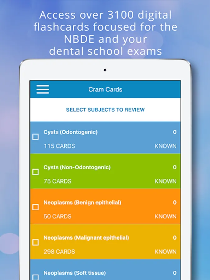 ⇨ Access over 3100 digital flashcards focused for the NBDE and your dental school exams on "Oral Diagnosis", anytime anywhere with convenience and accessibility!
