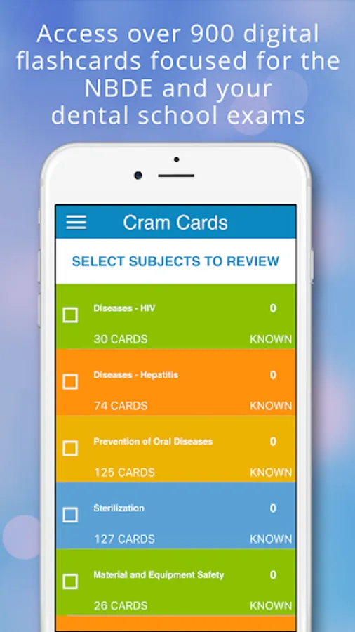 ⇨ Flip through your NBDE Cram Cards with intuitive finger motions