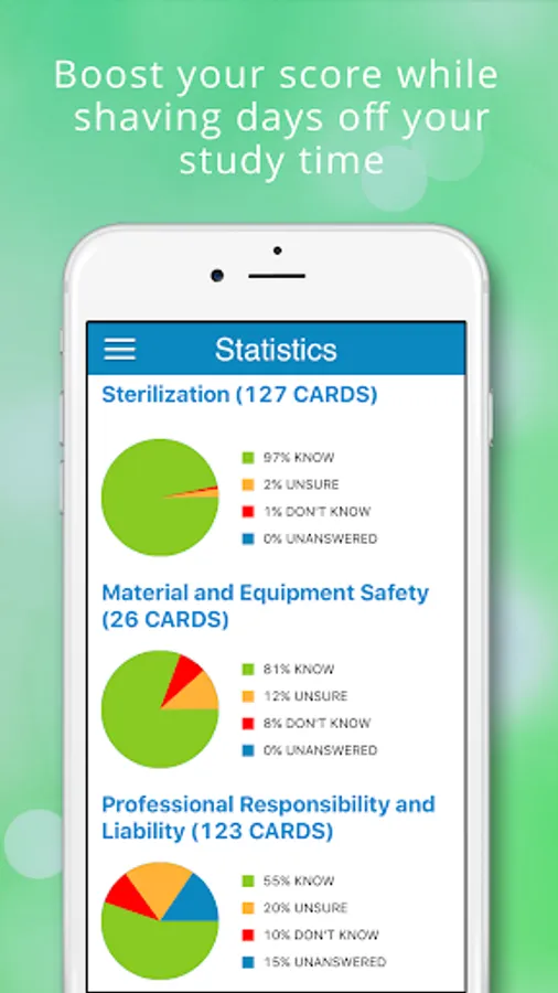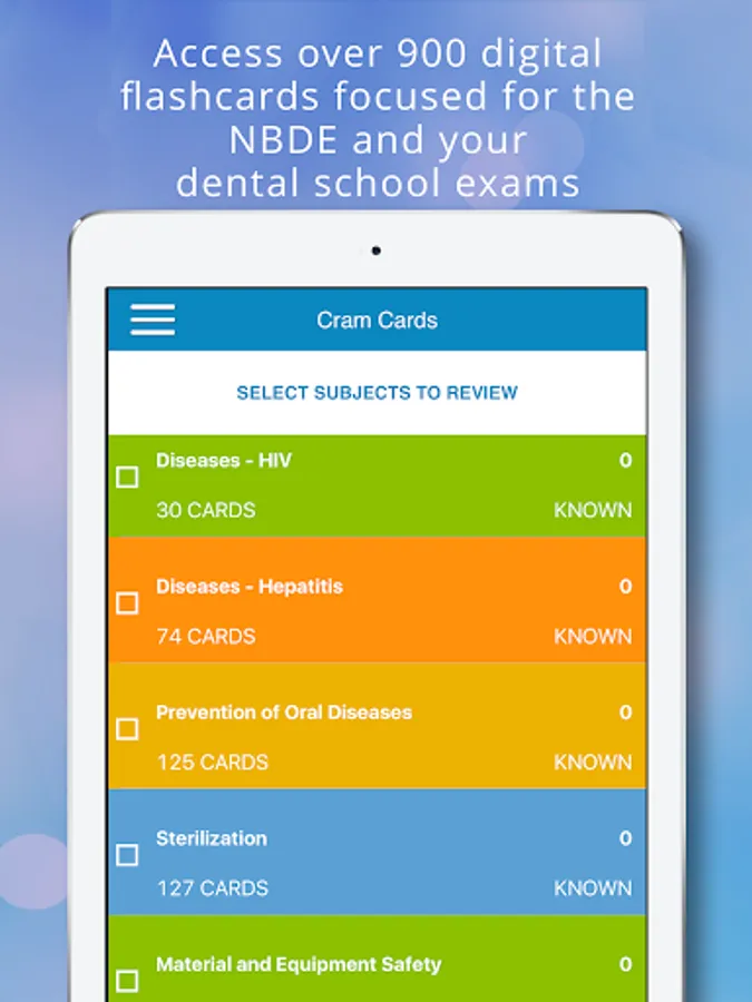 ⇨ NBDE Cram Cards learns your study habits and helps you visualize and monitor your progress through advanced statistics