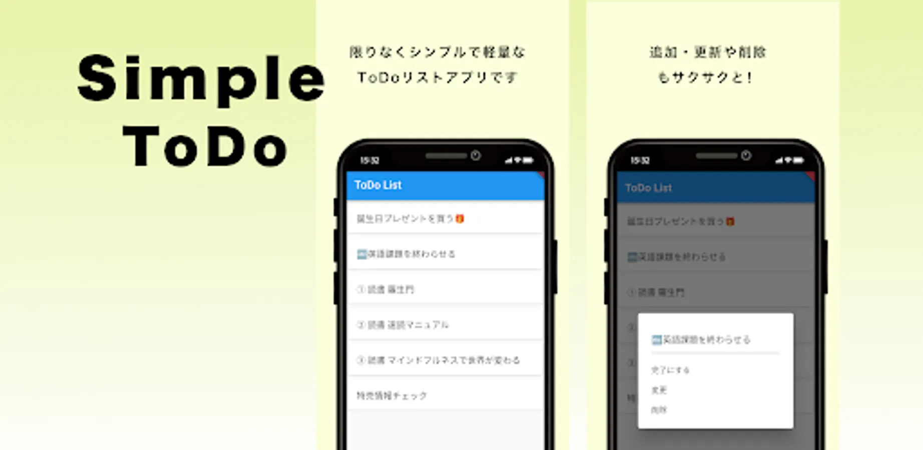 Just add, change to Done, and remove. You can easily manage your list.