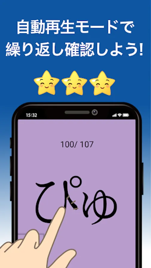 You can know the shape of hiragana in a flowing manner while checking the voice.