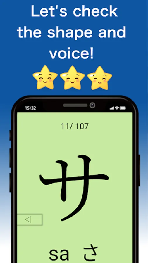 You can know the shape of katakana in a flowing manner while checking the voice.