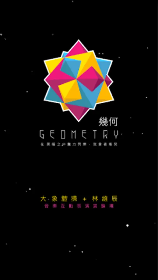 This performing is Mark Lin's master essay and works with Elephant Gym. In〈Geometry〉, the audiences can interact with the visual on the screen with their phone.