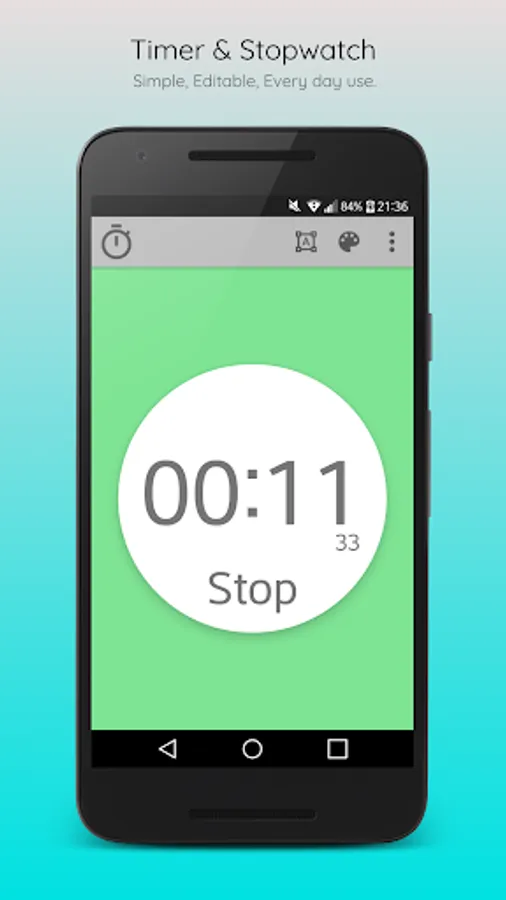 Easy Simple Timer Stopwatch & Time Counter is a timer digital app with a clean and minimalist design. You can customize the clock face and the background color for better visibility or simply better look.