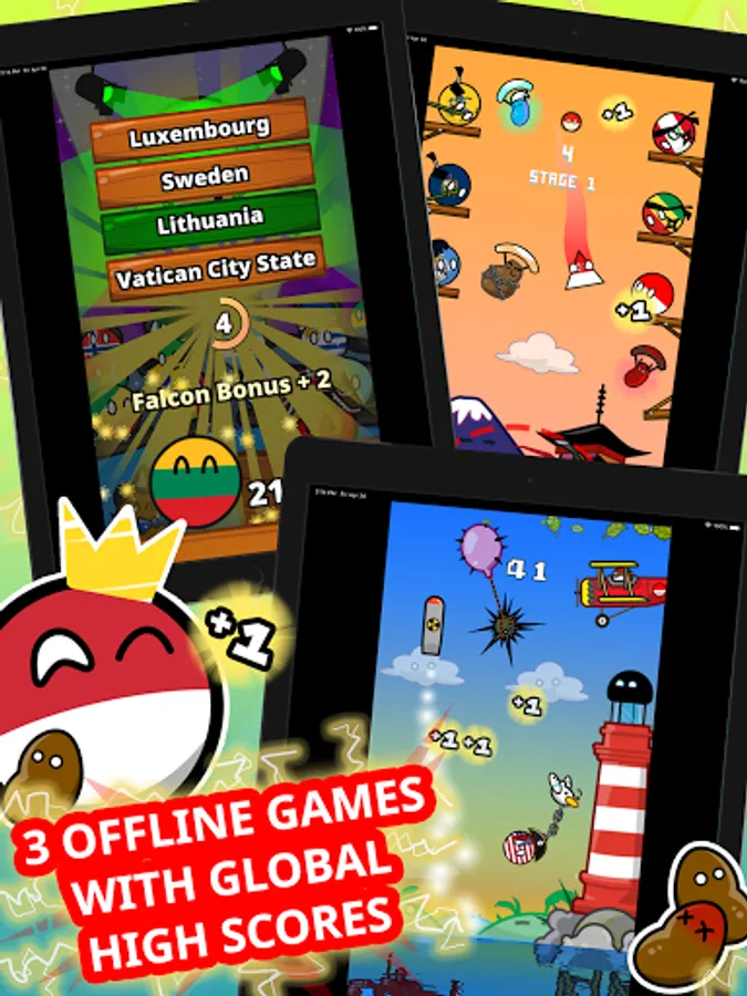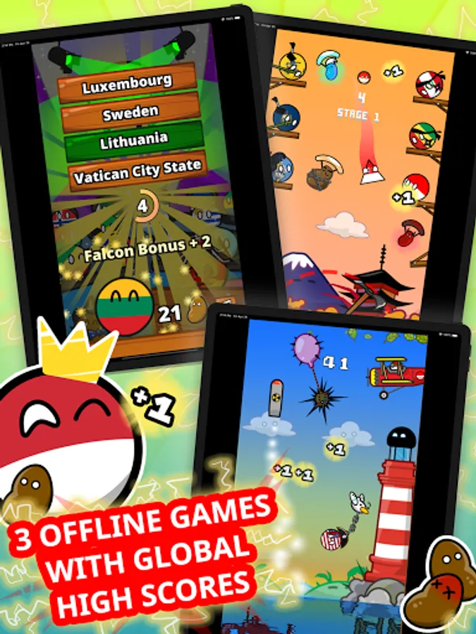 Classic Mode: Do you like pinball? Then you'll love this crazy countryball version of it! Capture enemy potatoes with your country ball in four unlockable worlds. The special potatoes provide the ultimate fun - Just don't burn your fingers.