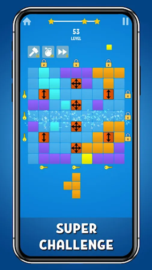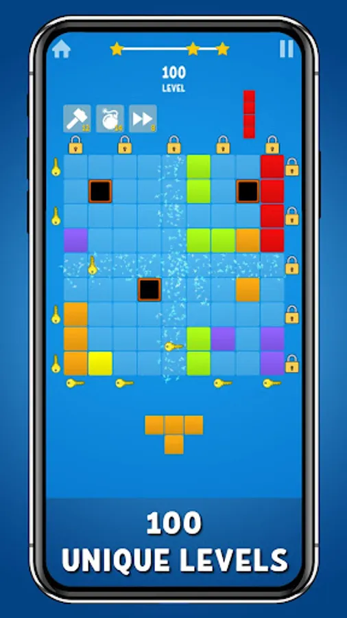 The goal of the game is to create a chain of blocks between the key and the lock, and then the lock will open.