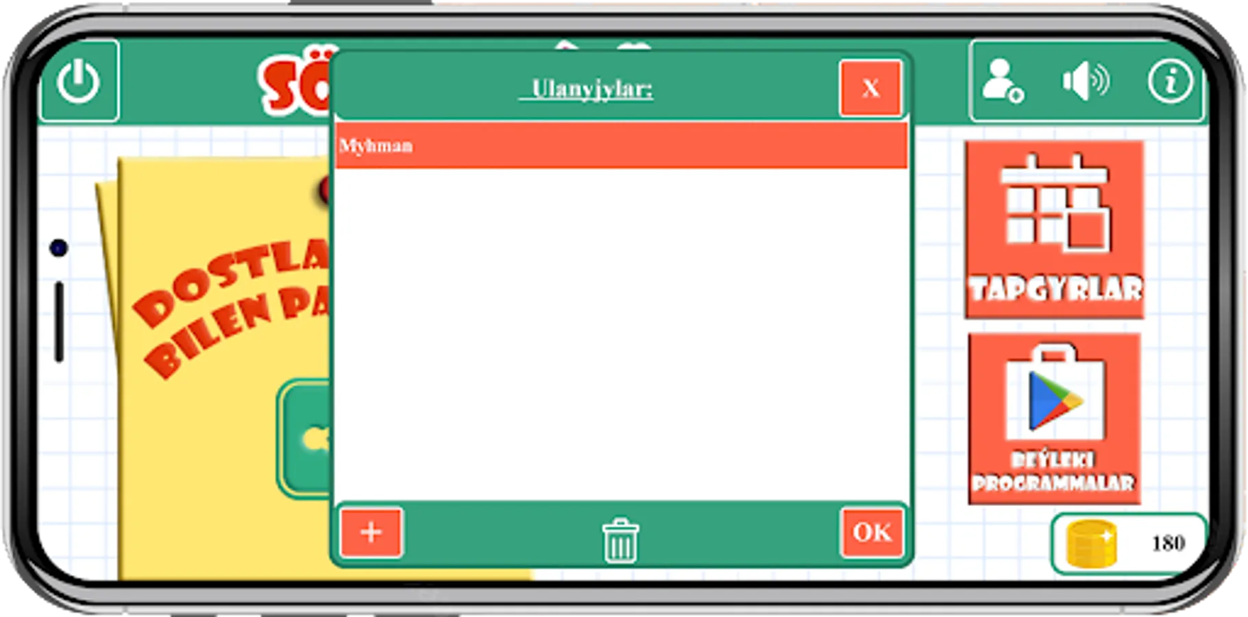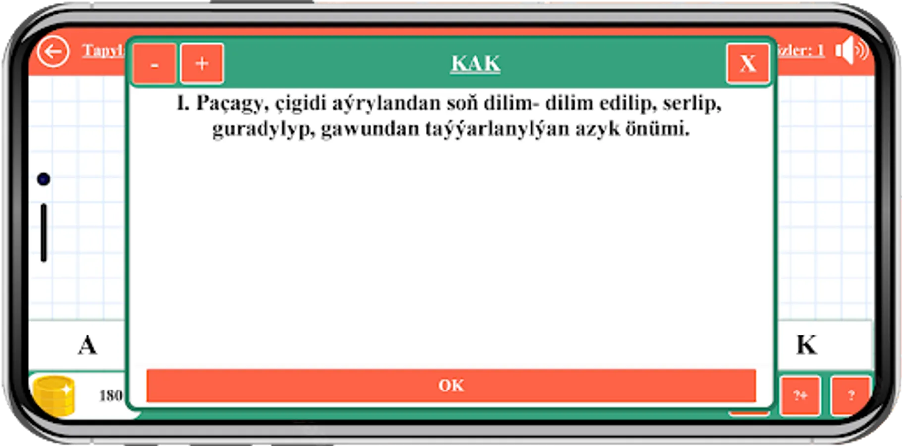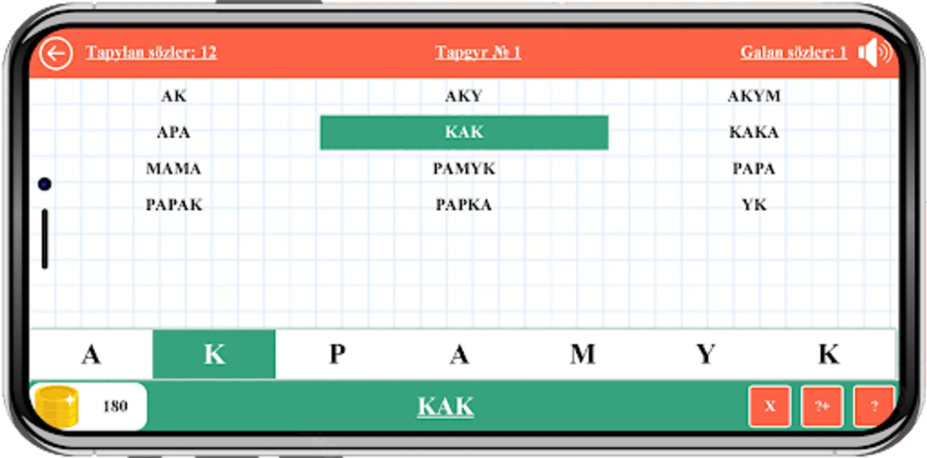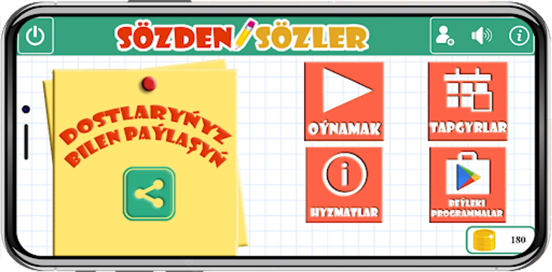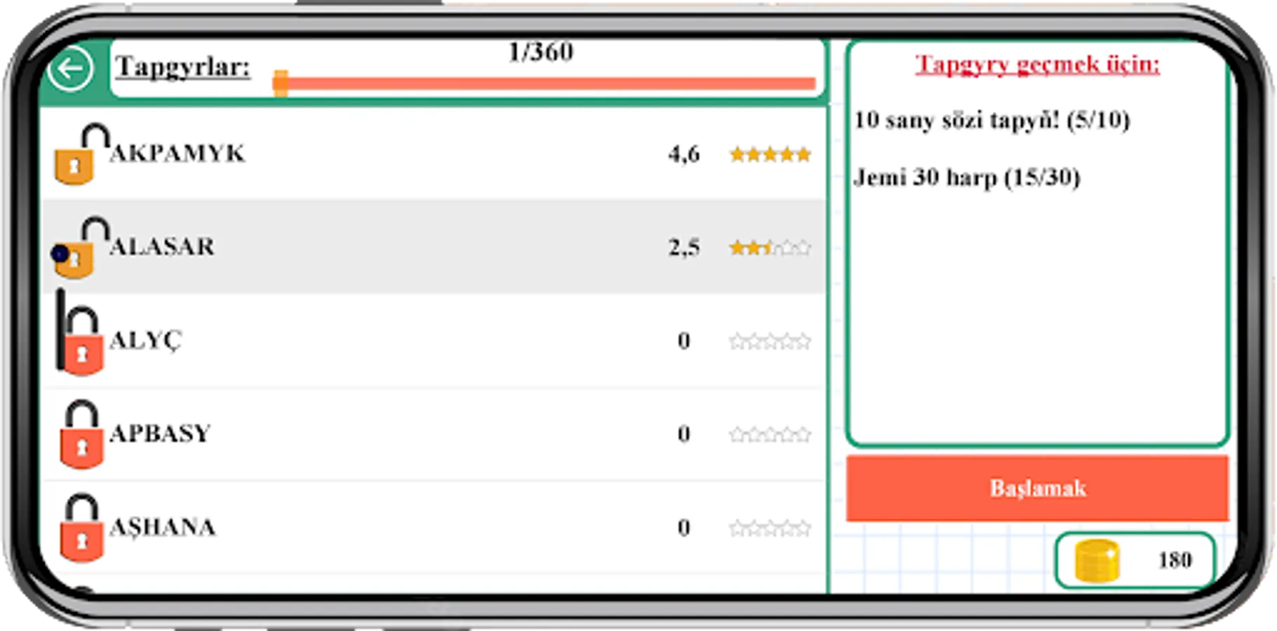 Bu oýun 360 sany tapgyrdan ybarat bolup, ulanyja her tapgyrda bir söz berilýär. Ulanyjy berlen sözüň harplaryny ulanmak arkaly, mümkin bolan sözleri düzmeli. Bu oýuny bir mobil enjamda birnäçe ulanyjy bolup oýnap bolýar. Ýagny oýunda täze ulanyjylary goşmak we aýyrmak mümkinçiligi döredilendir.