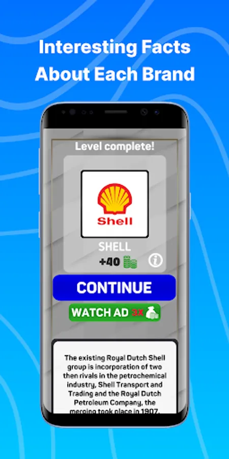 The game features interesting and fun facts and information about the brand, company or logo and it can be a source of learning or general knowledge development.