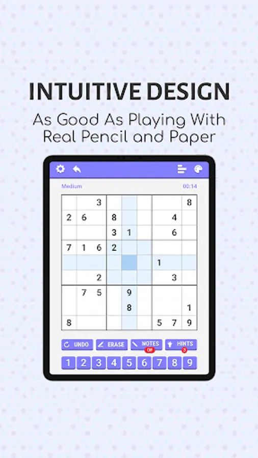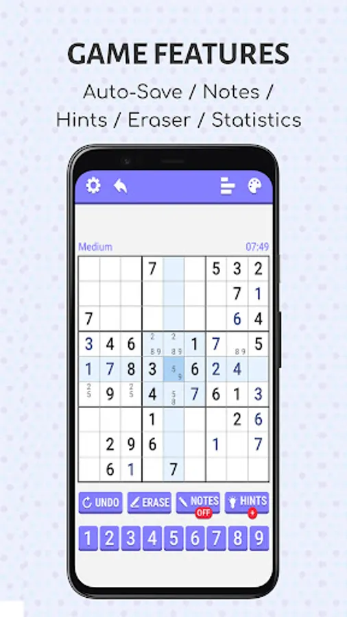 ✅ Notes ➡️ Turn on notes option to take notes just like you would on paper. Each time you fill in a cell on sudoku puzzle grid, notes are automatically updated!