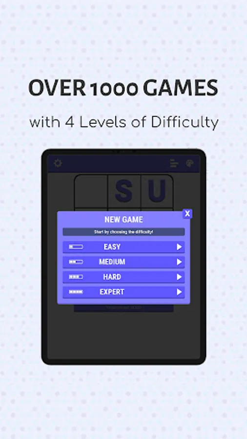 The NICMIT Sudoku mobile game is ideal for all levels of players, including beginners and advanced gamers, with 4 levels of difficulty to choose from: Easy, Medium, Hard, Expert.