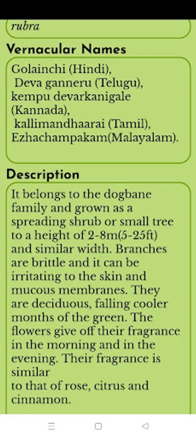 The android application was developed for scan the QR code to view the plant information. The QR code will include the various information of the particular plant when scan the QR code using the VruQshaRashi application it will redirect to the next page which will include the information of the plant i.e. plant botanical name, common name, kingdom name, order, family, genus, species, vernacular name, plant description, medical properties, chemical constituents.