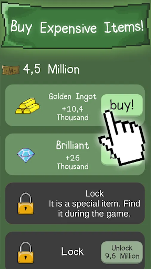 -To get an expensive item, you just tap on the screen.