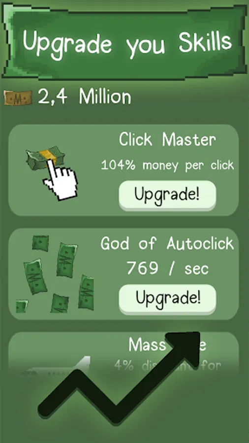 - Start earn cash without being in the game. Improve your Autoclick skill.