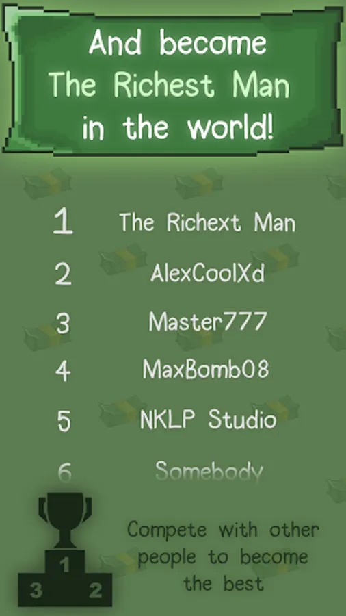 - Compete with other players for the title of the richest.