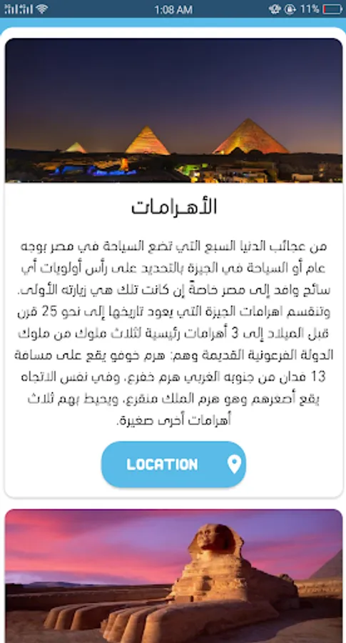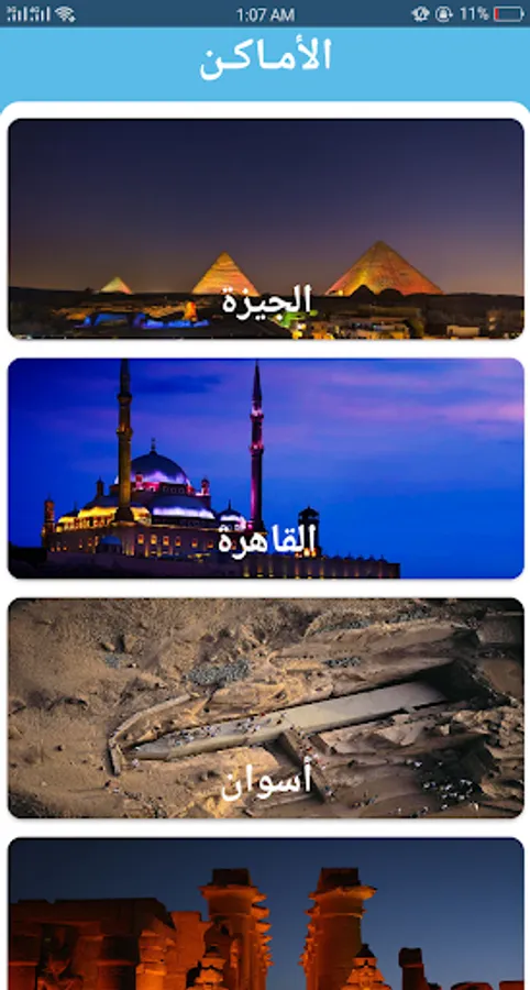Application on Fin Egypt is an application that helps you know the Egyptian tourist places and a brief overview of them and a picture of each place.