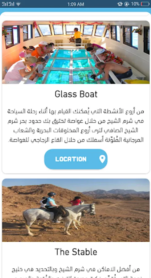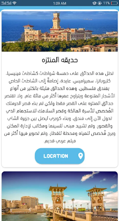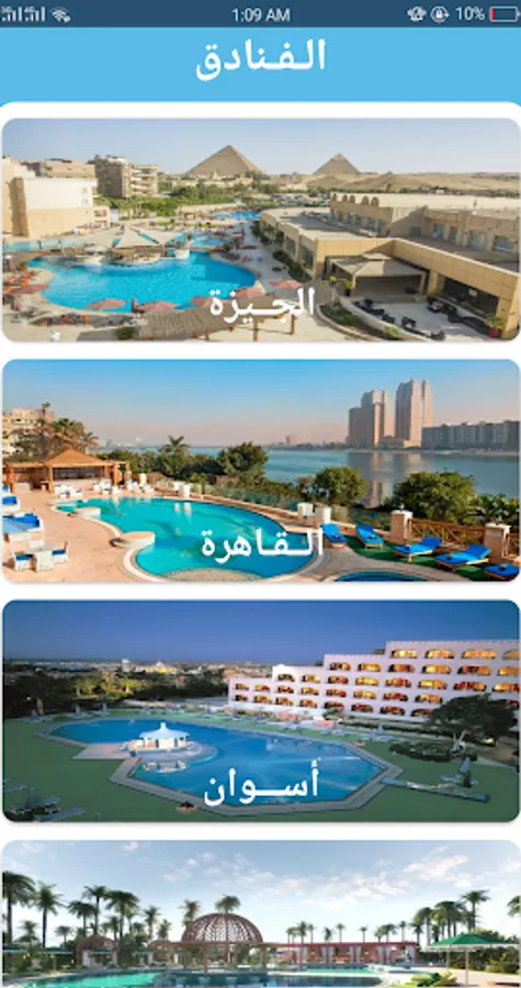 The application also contains a number of hotels that are found in most of the governorates of Egypt and its geographical location and a picture of each hotel.