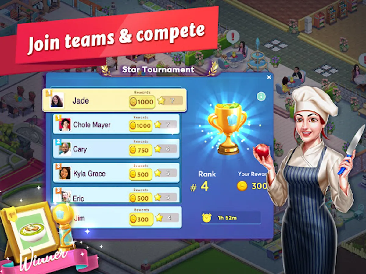 Chat and team up with your super chefs. Explore the well-knit community play features and team-up to collaborate & participate in tournaments.