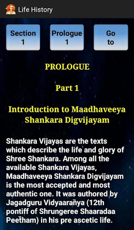 As an attempt to propagate the life history, teachings, tradition, ideals and glory of Shankaracharya among the masses, we are presenting this application. Hence the users are requested to share the application with interested ones.