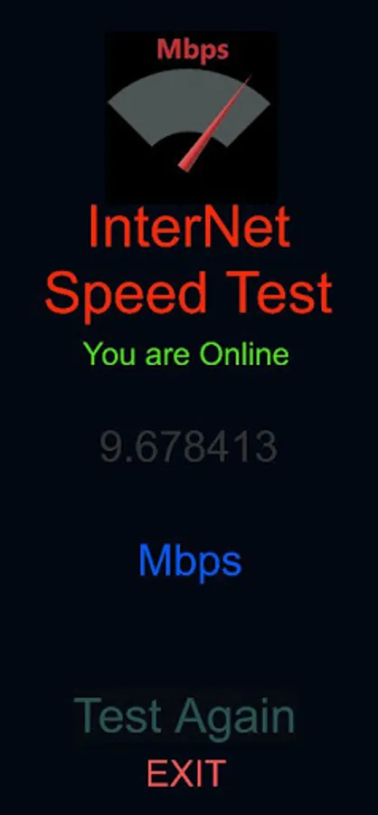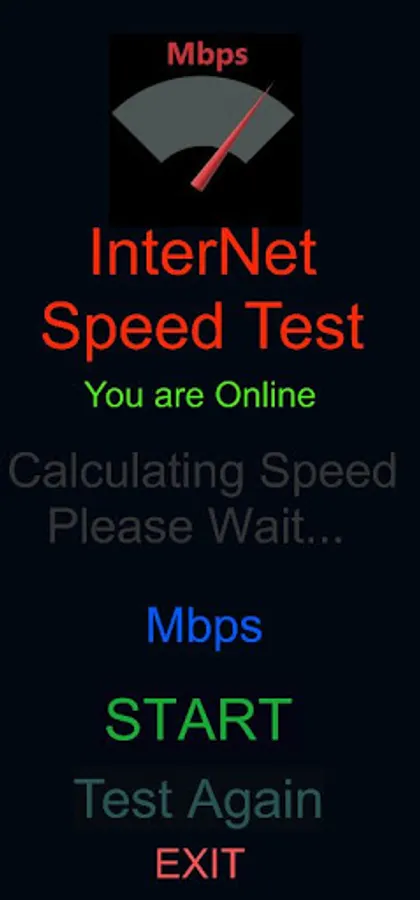 -To check the internet speed just click on Start Button and wait for some seconds. then speed will be displayed on the screen in Mbps.