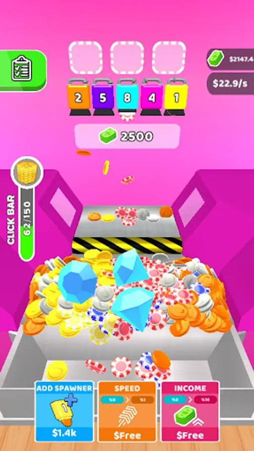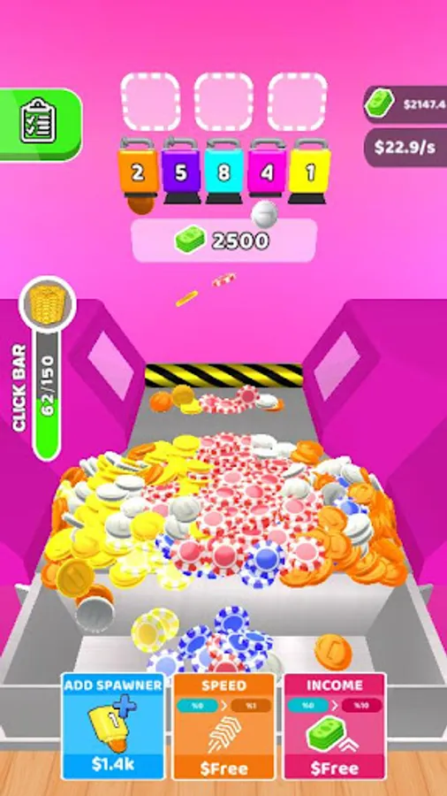 * Merge and Upgrade your coin machines.