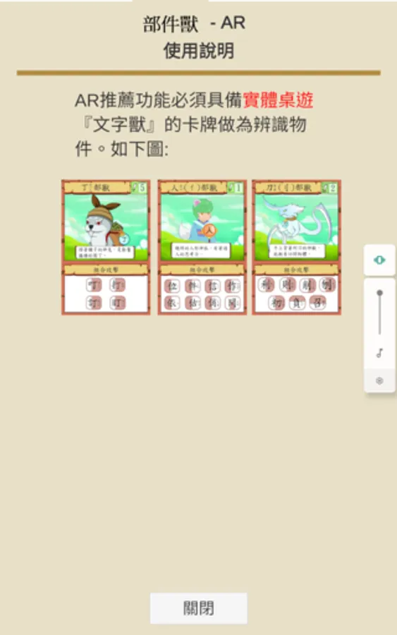 "Part Beast" is a literacy learning and educational board game that combines 108 literacy orientation. It is developed and promoted by the research team of Dream Box@education board game. During the game, recognize the concept and structure of components, as well as the application performance of word creation. The "Component Beast" uses AR technology to provide players with a clearer text story. It also supports a single-player practice mode to promote students' autonomous learning, as well as voice recognition to automatically identify students' spoken words.