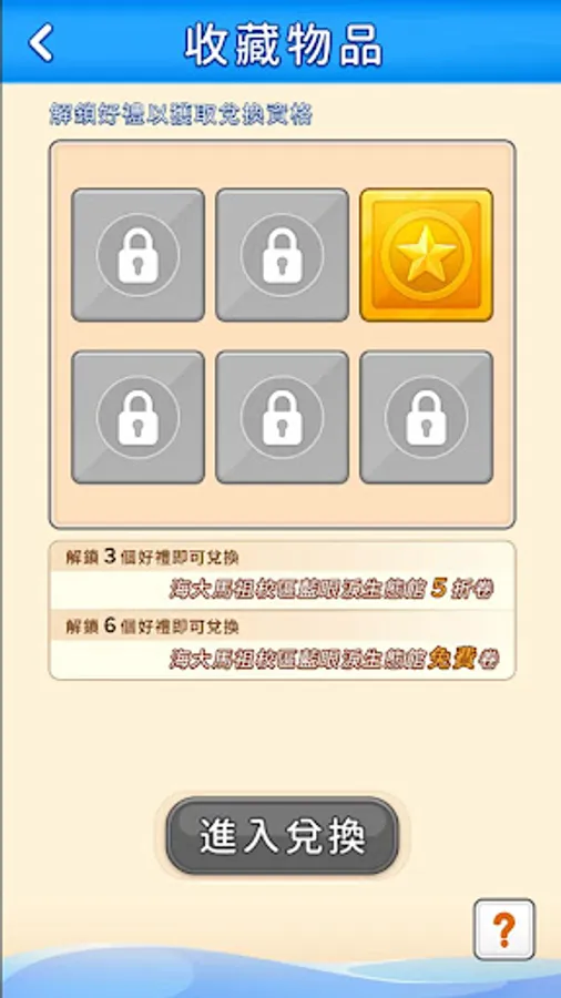 民眾到馬祖北竿鄉可透過行動裝置下載「看見馬祖․智慧海大」AR智慧導覽APP,至北竿白馬尊王廟、坂里大宅、天后宮、芹壁、橋仔、國立臺灣海洋大學馬祖校區等六站集點,並與海大Q版「海鷗」一起拍照,集滿3個站點,可兌換海大馬祖校區藍眼淚生態館5折券。集滿6個站點,可兌換海大馬祖校區藍眼淚生態館免費券。48小時內有效,超過時間,則全數清空,需重新收集喔!