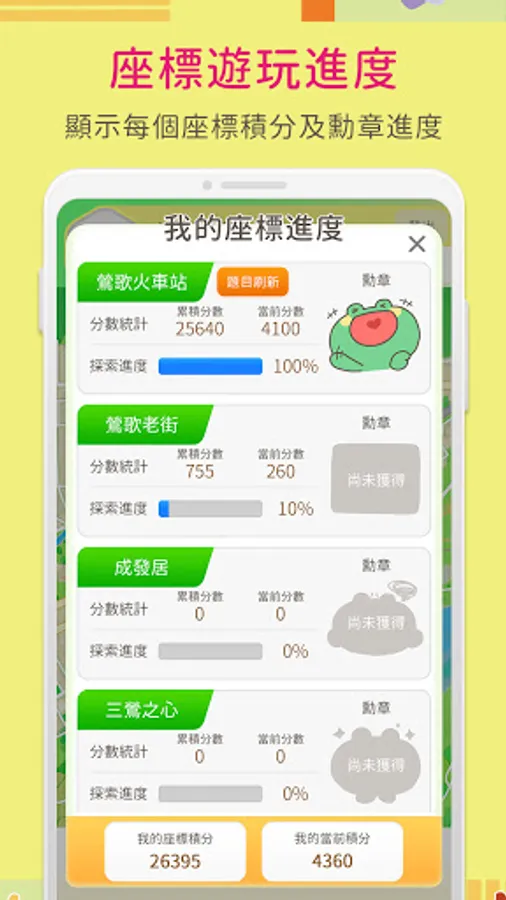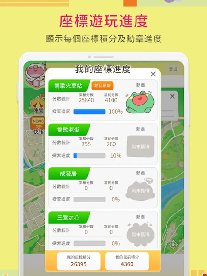 There are 10 coordinates on the map, namely Yingge Railway Station, Chengfaju, Yingge Old Street, Sanying Heart, Yingge Museum, Li Meishu Memorial Hall, Hexi Settlement (Love Neighbor Hospital), Three Gorges Arch Bridge, and Three Gorges Temple , Three Gorges Old Street, after completing the coordinate puzzle, you can collect the lovely WaWa medals!