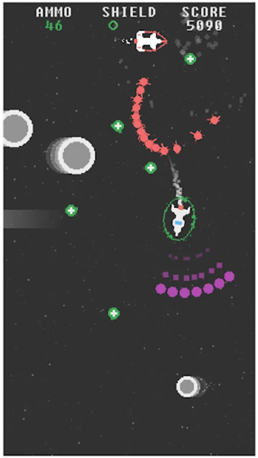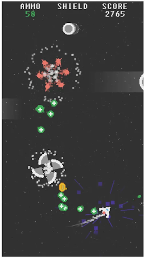 Your ship can not stop moving; so turn it left and right by touching the screen to keep from running into an ever increasing amount of enemies. Your ship is always shooting, so make sure to pick up more ammo and the variety of awesome power ups to help you survive longer. Get the highest score you can while collecting coins to buy more ships that fly faster, shoot faster, or have more shields.
