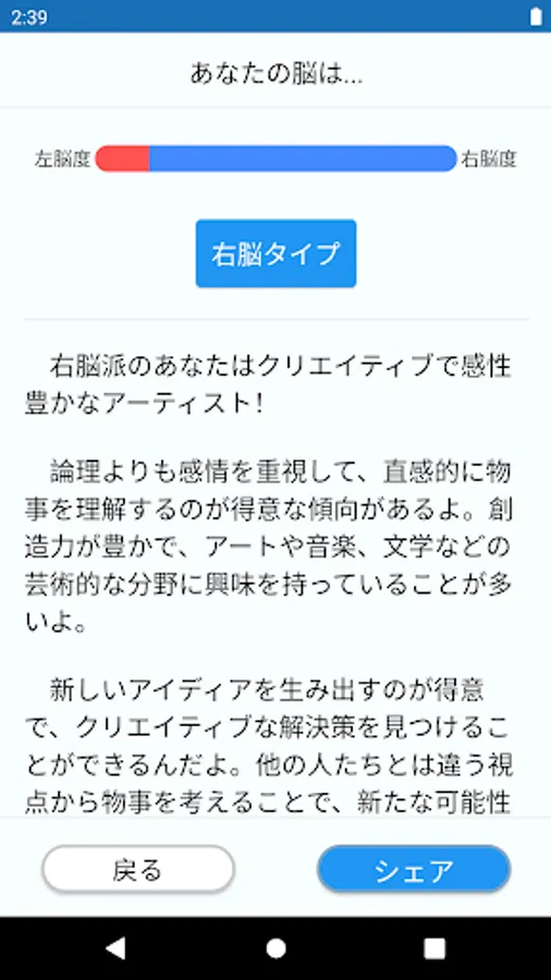 The app analyzes your tendencies from the answers to the questions and determines which brain trait you have.