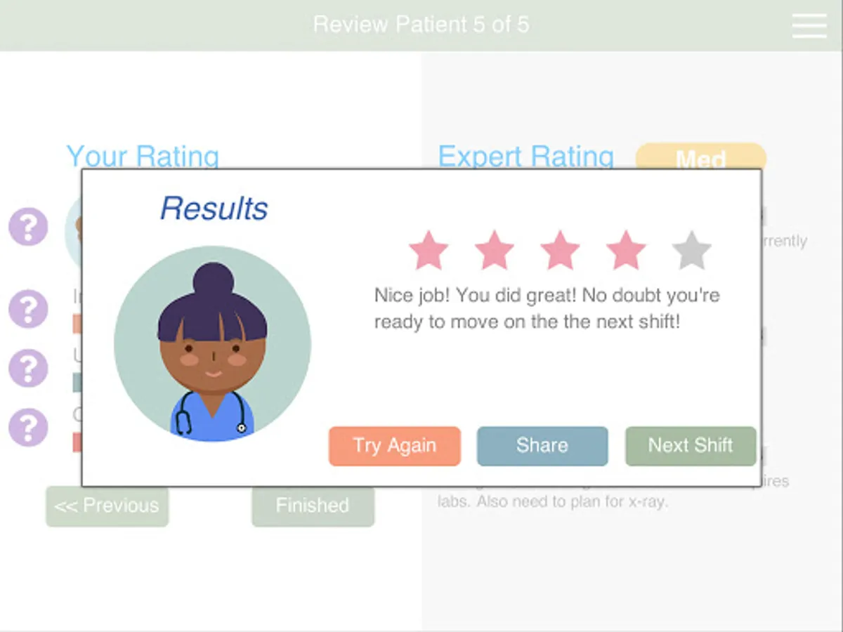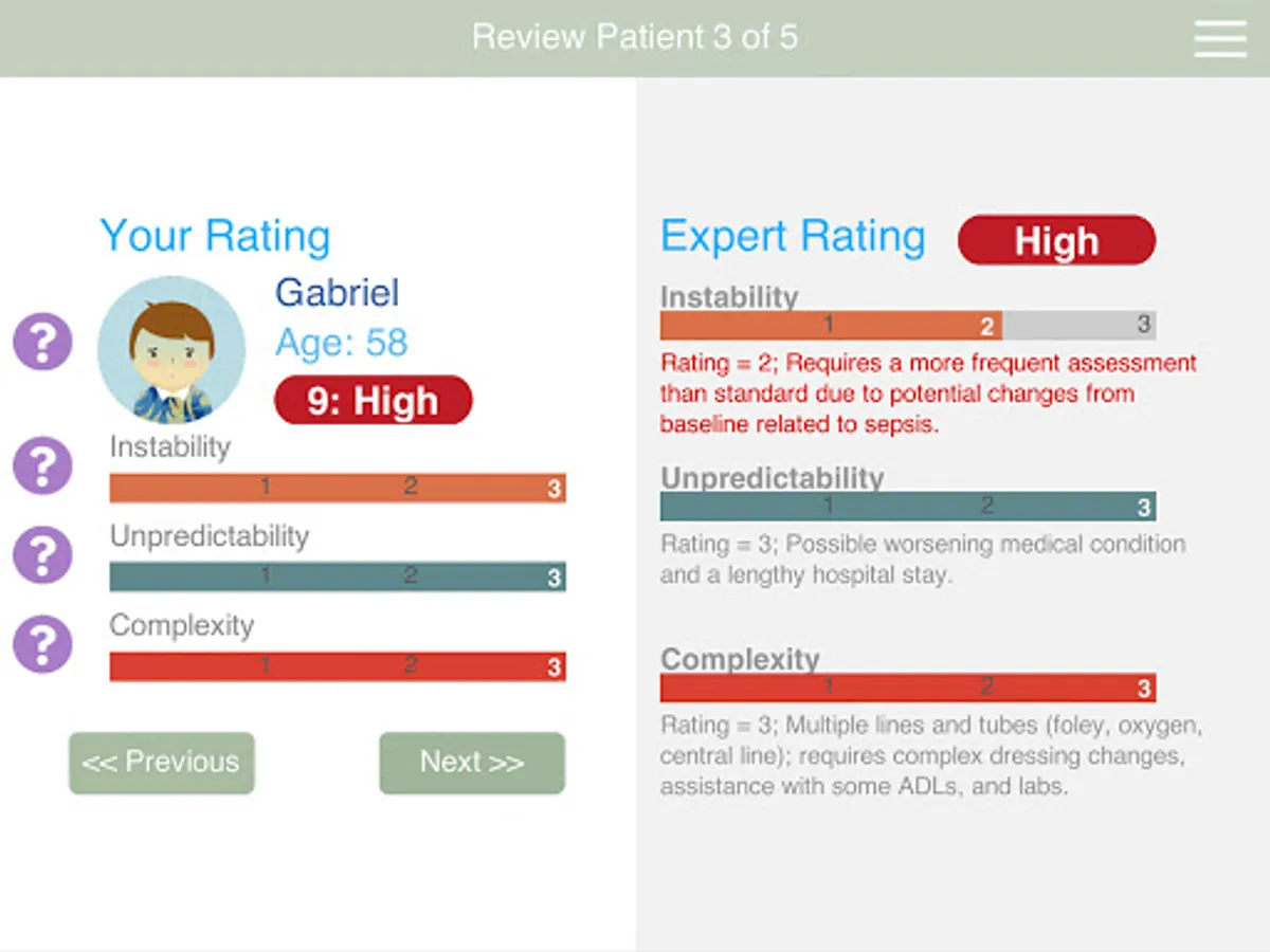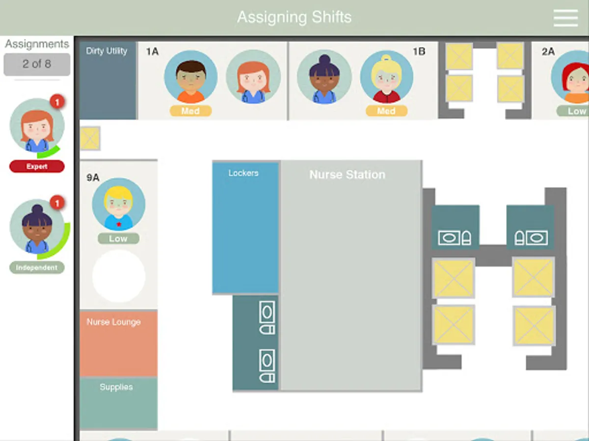 A mobile game to help nursing students practice the multifactor decision-making process of nurse assignment, which includes accurately recognizing nurse competency, assessing patient acuity, and determining how to equitably assign which patients each nurse sees on a shift. While these skills have traditionally been difficult to learn without being on the job in a high-risk environment, this new practice tool allows students to fail safely, without affecting patient health.