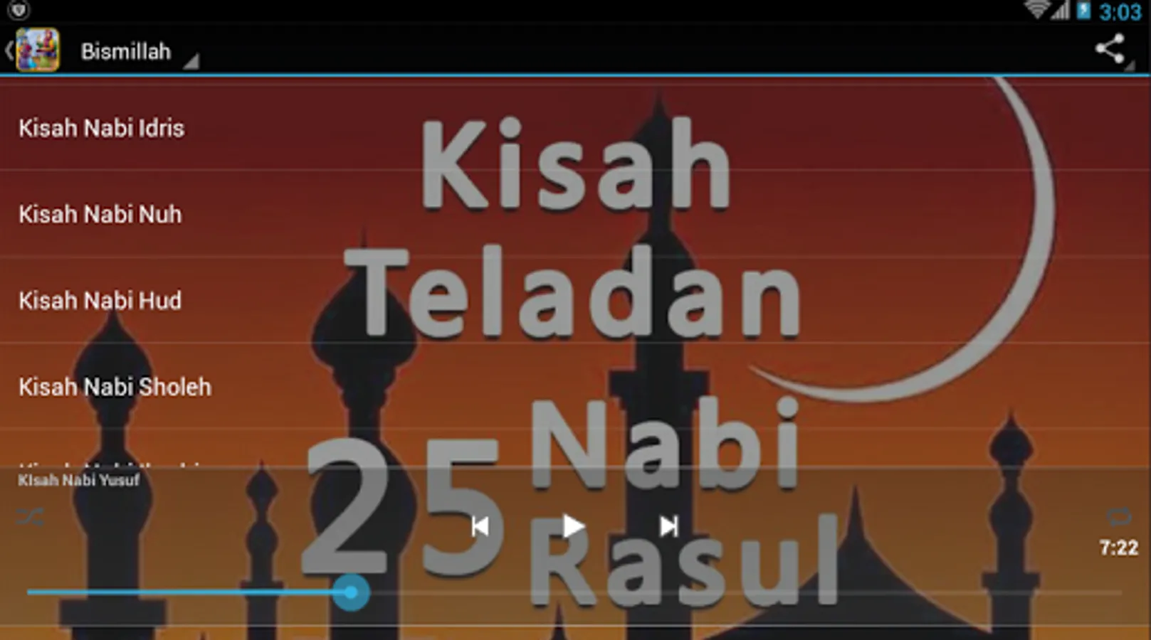 Aplikasi ini berisikan cerita dan kisah lengkap dari 25 Nabi dan Rasul yang disajikan dengan narasi yang menarik, renyah, dan mudah diikuti baik oleh anak-anak maupun dewasa. Inilah kisah-kisah nabi dan rasul yang bisa anda dapatkan:
