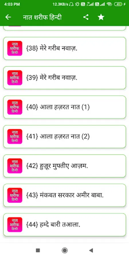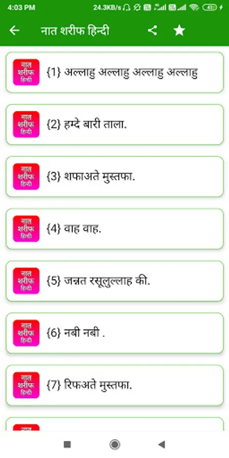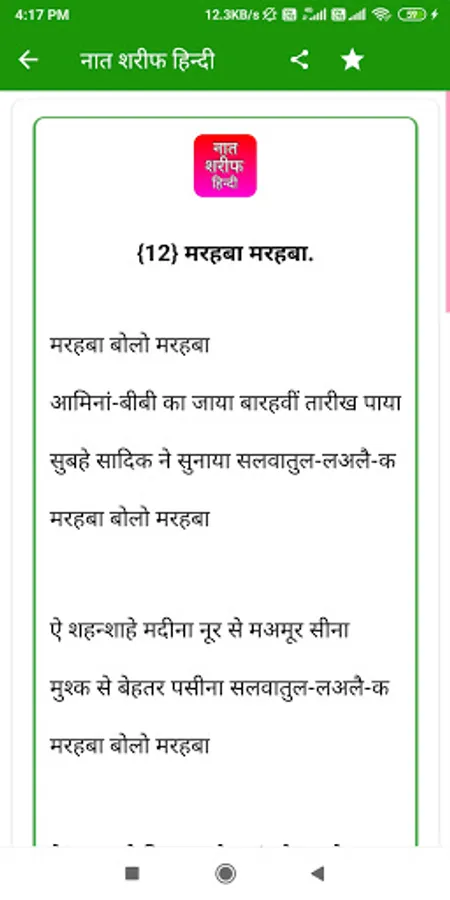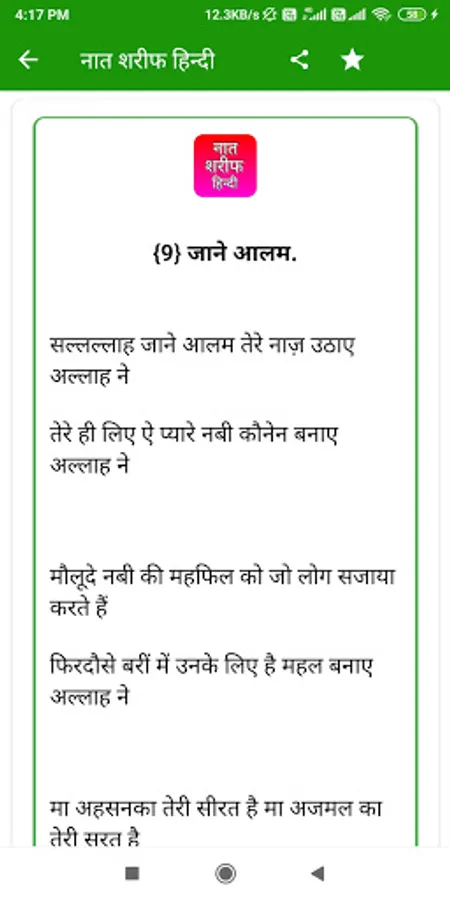 so guys hamne is app Naat Shareef Hindi me bahut sari naato ko shaanil kiya hai hindi me aap is app ko download karke asani se use kar sakte ho, Naat Shareef Hindi app apke liye bahut helpfull hone wali hai is app ko hamne poora hindi me banaya hai aap hindi me is app ko asani se pad sakte ho, Naat Shareef Hindi app best app hone wali hai, guys agr aapko Naat Shareef app ko use karne me koi problem dekhne ko mile to aap hamse problem share kar sakte ho.