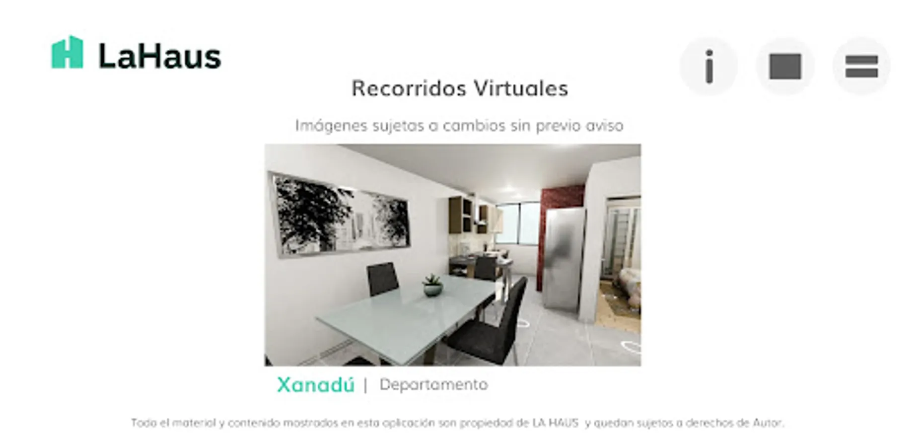 Through this application you will be able to discover the different prototypes that La Haus has to offer without having to leave home. See them both traditionally and in virtual reality.