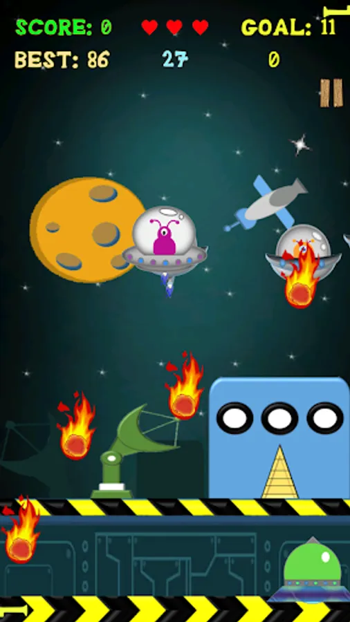 Collect broken pieces of special metals that were scattered all around so that you can patch up the ship's holes while dodging meteorites from space and aliens.
