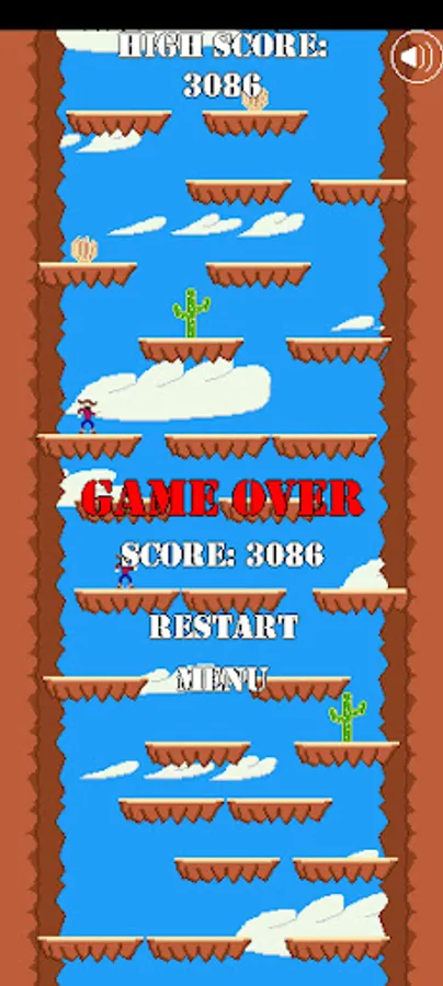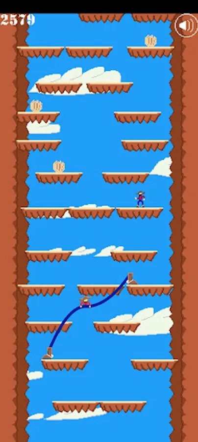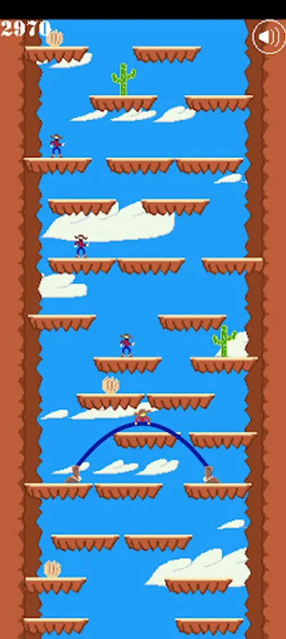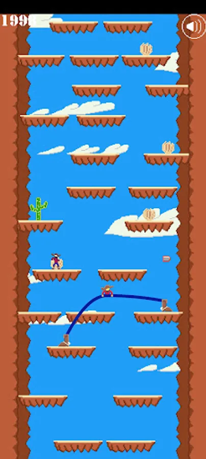 Otis Jenkins fell into a very deep canyon in old western Utah and has to use his exceptionally long legs to get himself out. Use your thumbs to aim each foot separately to get up the platforms while avoiding cacti and other cowboys in the canyon!