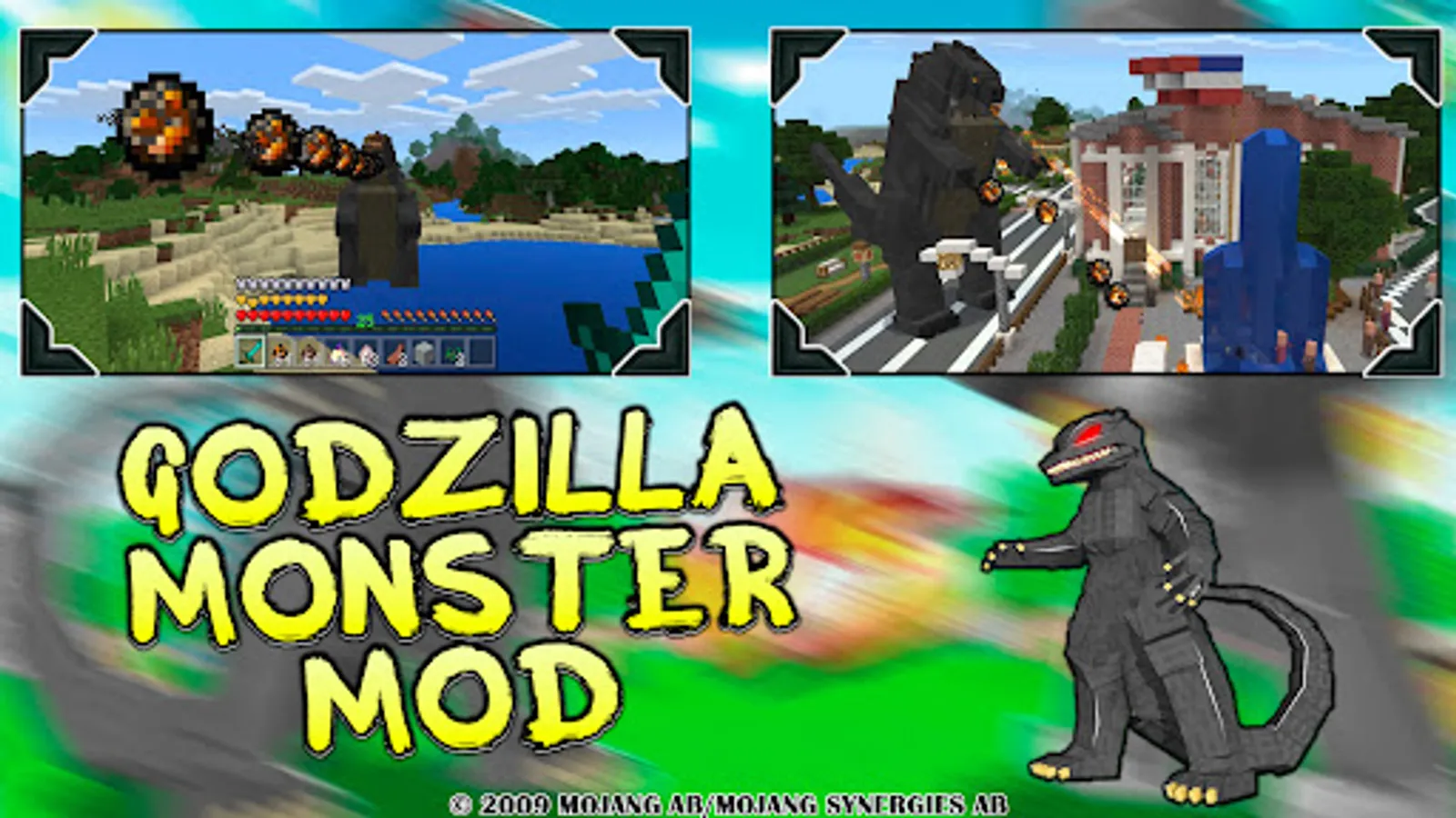 Its monster battle mods with Godzilla Hensei skins and survival maps pack for your craft mcpe game, contain 3 pixel pe mods pack in application.