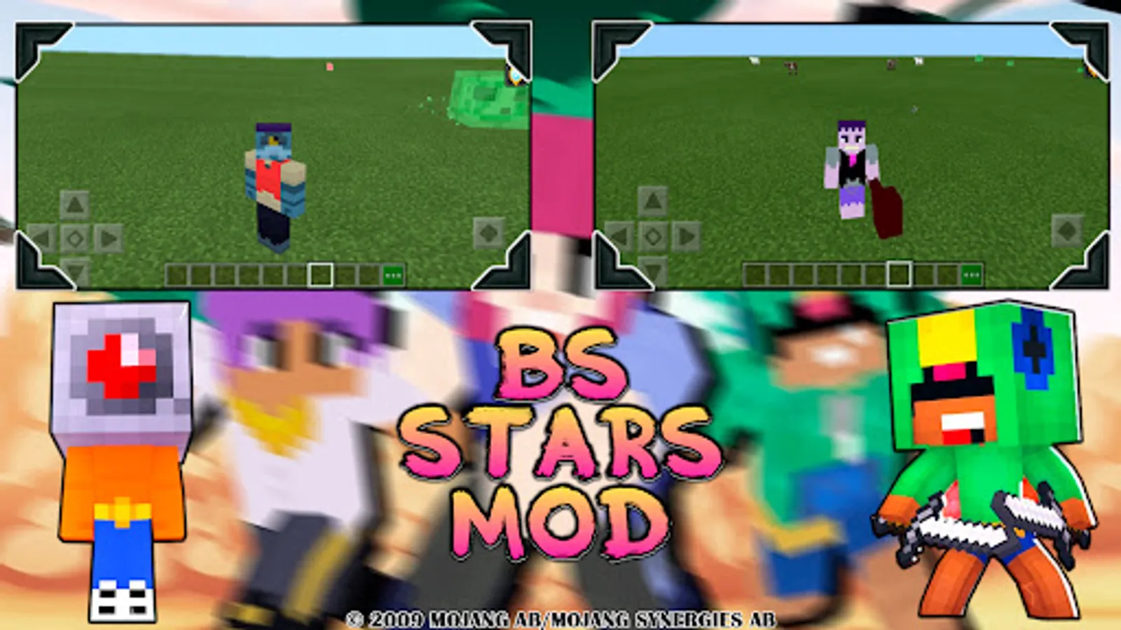 This is the Brawl BS Stars Mod for MCPE with a lot of skins and maps and addon. Welcome to this PVP Stars Maps. Embark in this mod based on the pocket brawl game. You can also play 1v1, or 3v3 Gem Grab Mode to Play with up to 5 friends.