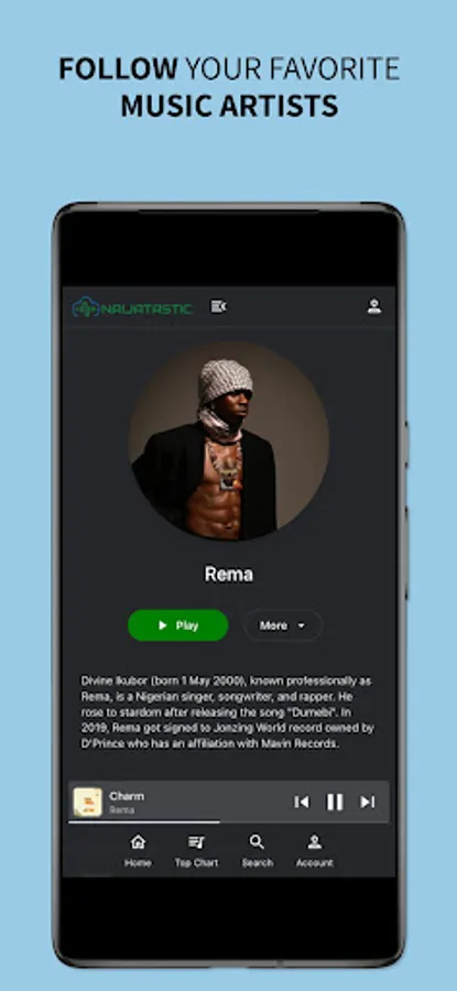 Worldwide fans listen to millions of African songs, albums, and connect with African artists. Naijatastic has its origins in Nigeria and it is a single name derived from the combination of two-word meanings. "Naija" is the slang name for a Nigerian or the country, Nigeria. "-tastic" is used in forming adjectives denoting someone or something regarded as an extremely good example of their particular type, e.g Fantastic, Poptastic, Naijatastic :)