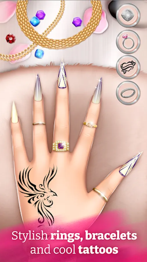 Nails salon games offline usually don't have everything you need. But, this time it's different. Play the new nails game 2022 every day! Do you want only the most magnificent manicure and pedicure games for girls? If YES is the answer to such fashion nails salon questions, we’ve got you covered. Our “fashion nail art designs game” will take you to the greatest mani pedi adventure. Apart from awesome hand and foot spa toenail and fingernail painting, here you can tastefully decorate your beautiful nales with absolutely fantastic glitter, stylish bracelets, rings or tattoos. Get Nail Art Salon girl game and you’ll have no regrets. Or maybe just one: not playing such a fantastic neal game sooner! Have fun visiting the Nail Art Fashion Salon Game! You can always come to this place for inspiration. Find the way to channel your creativity with one of the prettiest nails salon games for girls! Don't you worry because you will have one of the wonderful “nail art games for girls only offline”. Have a look at the gallery!