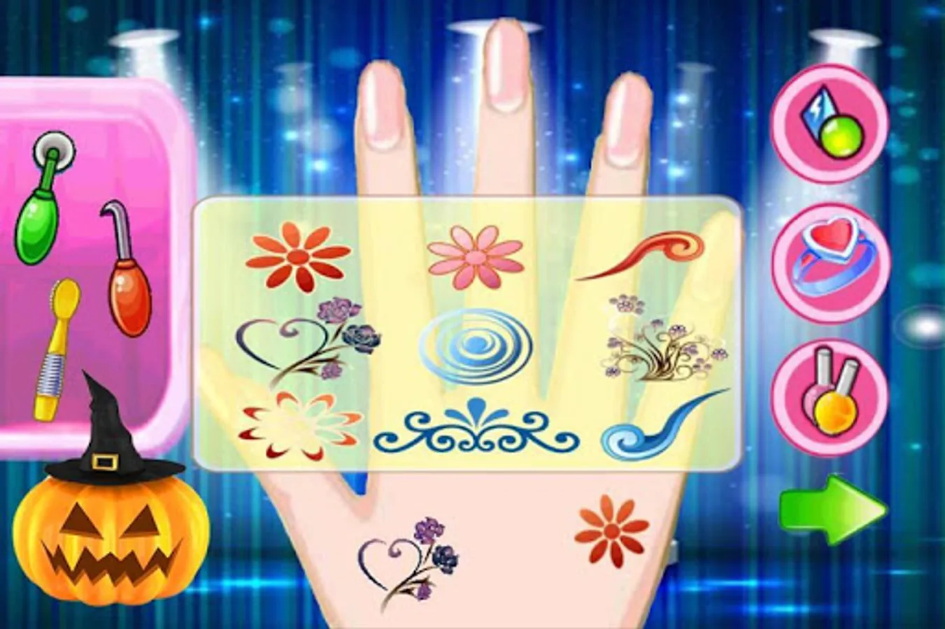 Celebrity nail arts with hundreds of nail combinations in Salon Nails and Manicure! With dozens of nail salon quality nail polishes and effects, you can decorate, embellish and accessorize to your heart content with no giant salon bill, no mess and I don't even have to wait for it to dry!