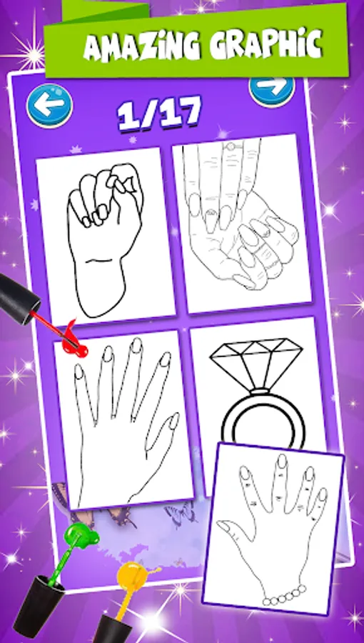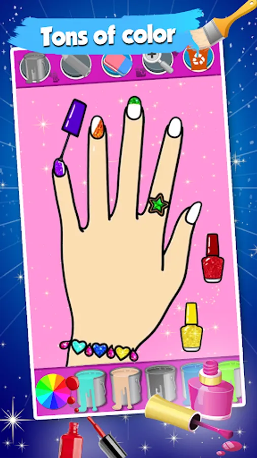 download Nail Coloring Book and style your nails by giving them a real fashion nail make over with this best nail art salon game. You can show your master nail art by sharing it with your friends and family on different social networks. Also you can save your nail art picture in your phone gallery.