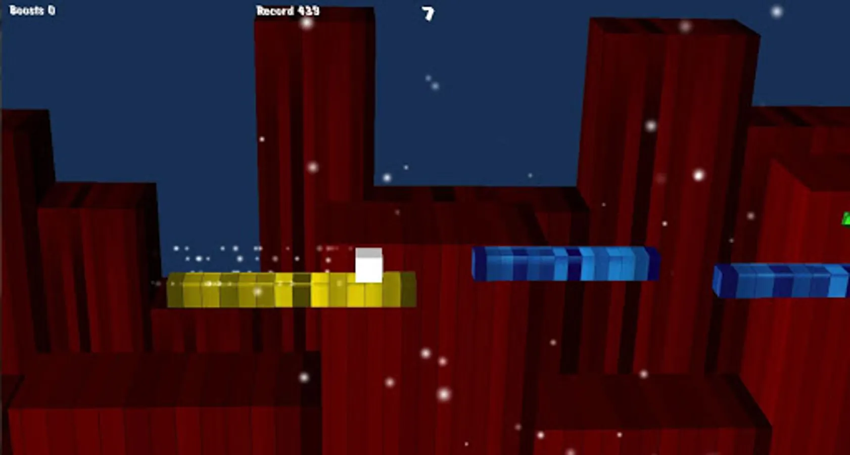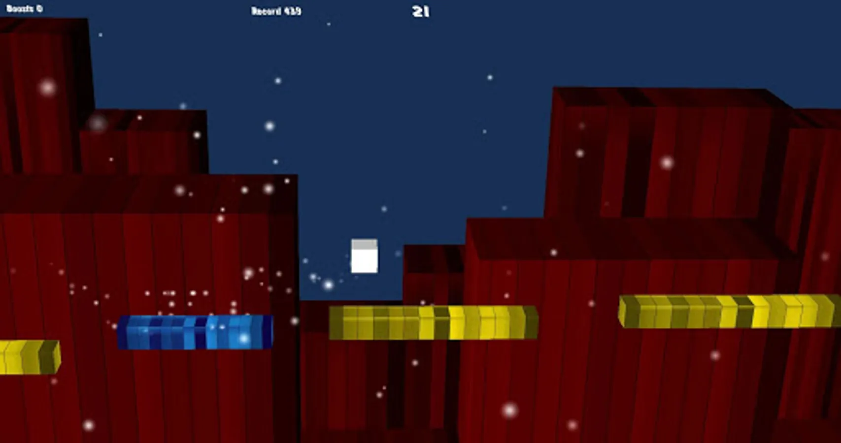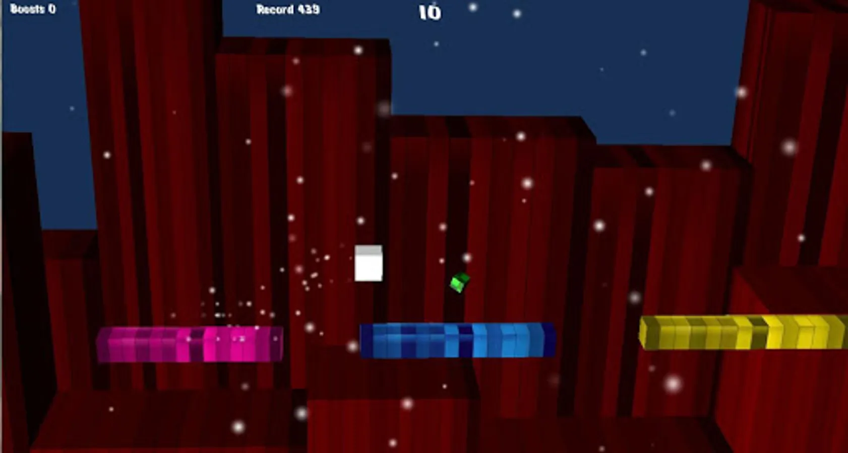 Simple game, but a great challenge. Your block has to jump from platform to platform. It accelerates with time, when the block slides on the blue speeds higher and higher. In yellow blocks it also slides faster. Now it slows down the pink blocks. During the game take the green blocks that are boosts or you will be even faster. Try to beat your record each race.